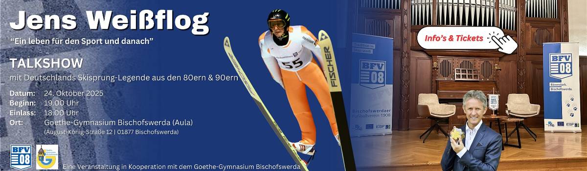 VEREIN | Save the date: Wir holen Skisprung-Legende Jens Weißflog nach Bischofswerda und ihr könnt bei der Talkshow „Jens Weißflog - Ein Leben für den Sport und danach“ live dabei sein.